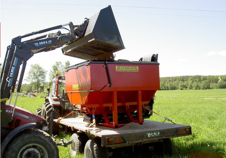 Grusutleggeren monteres enkelt på en traktor- eller en skogshenger.