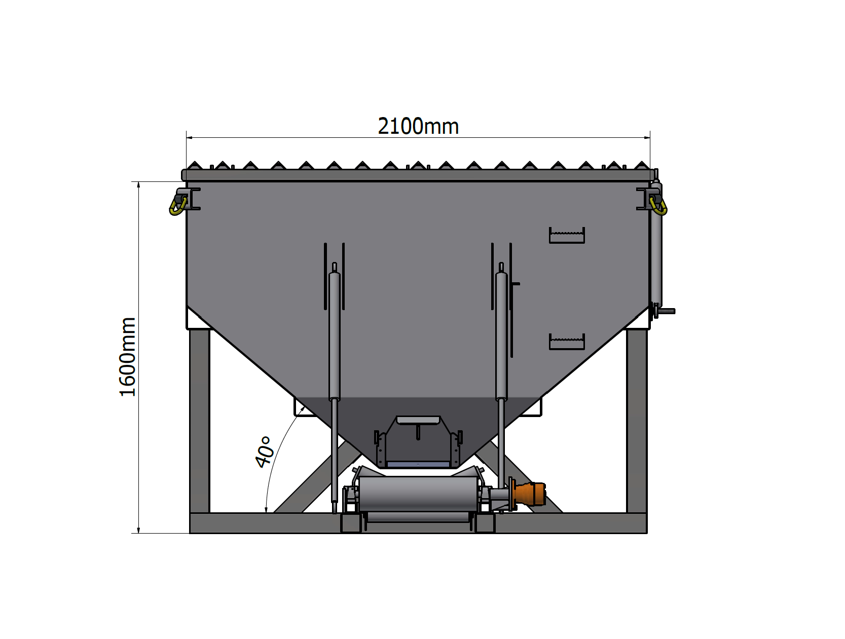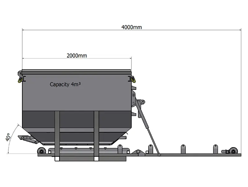 Sorteringsrist med hydraulisk løft for enkel tømming.